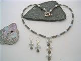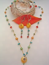 Brown Pearls, Blue Silk and Handmade Glass Bead Necklace: $200 Earrings: $50